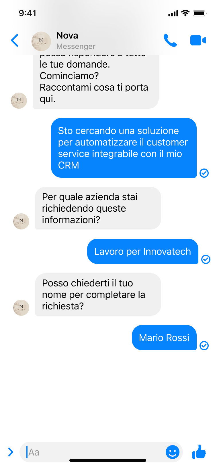 Evita frustrazioni all'utente. Progetta flussi che riconoscono quando è necessario l'intervento umano, garantendo un passaggio di consegne al tuo team sempre fluido e contestualizzato.